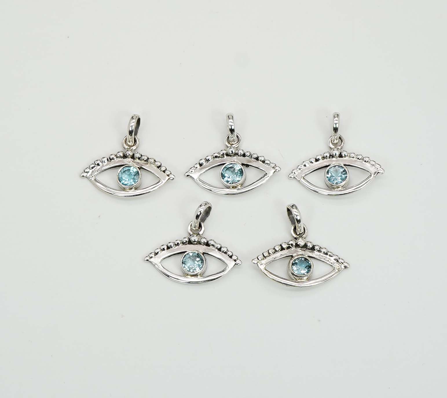 Wholesale 925 5PC Solid Sterling Silver Cut Blue Topaz Eye Style Pendant Lot
