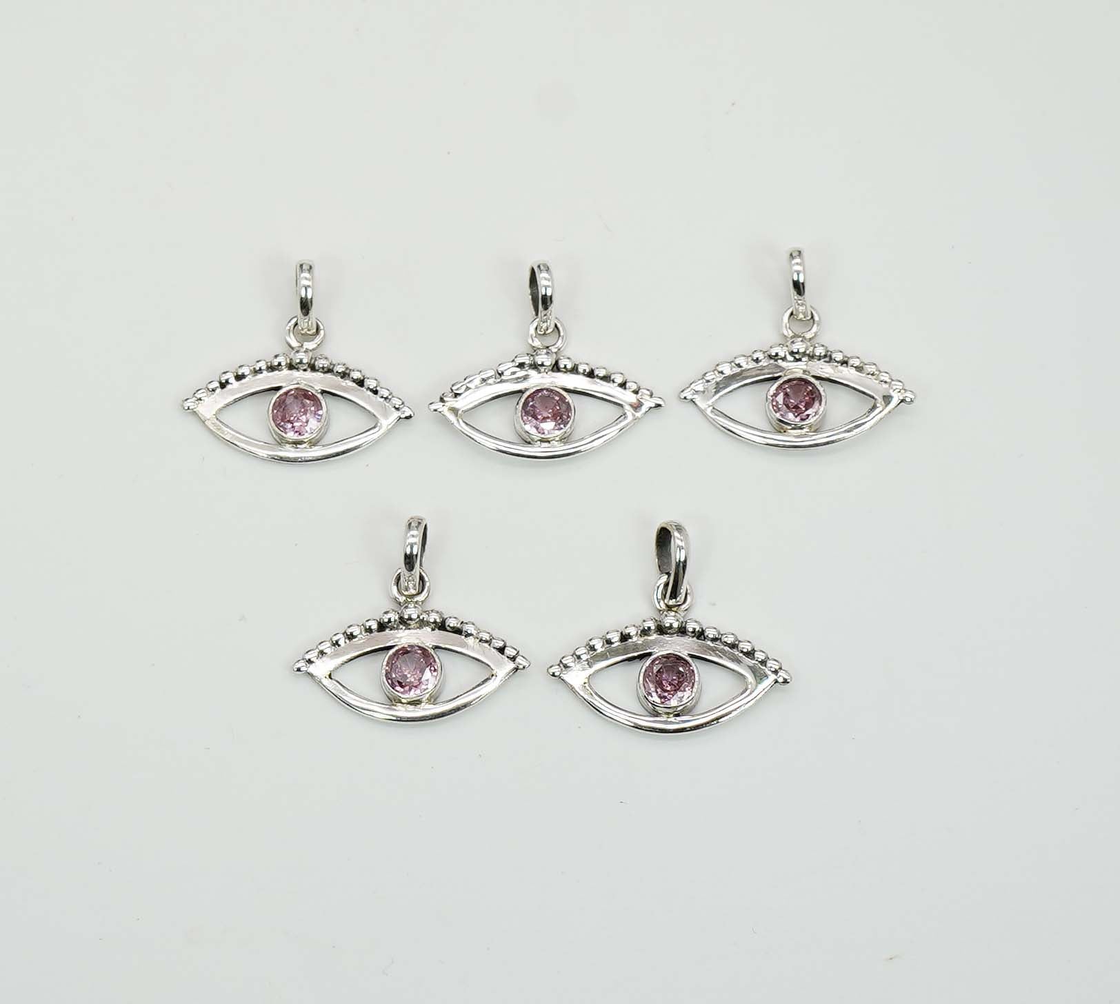 Wholesale 925 5PC Solid Sterling Silver Cut Pink Topaz Eye Style Pendant Lot