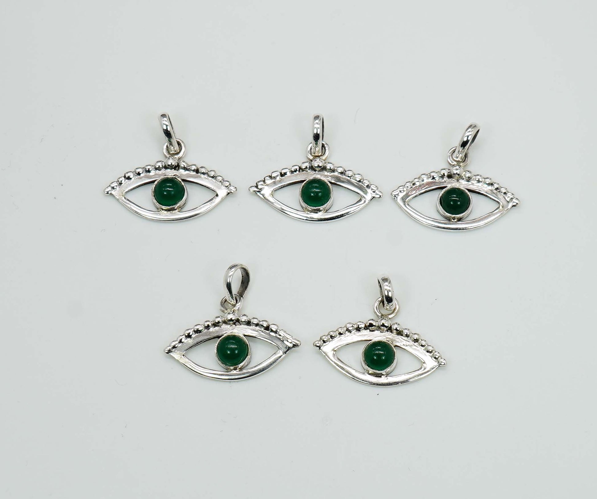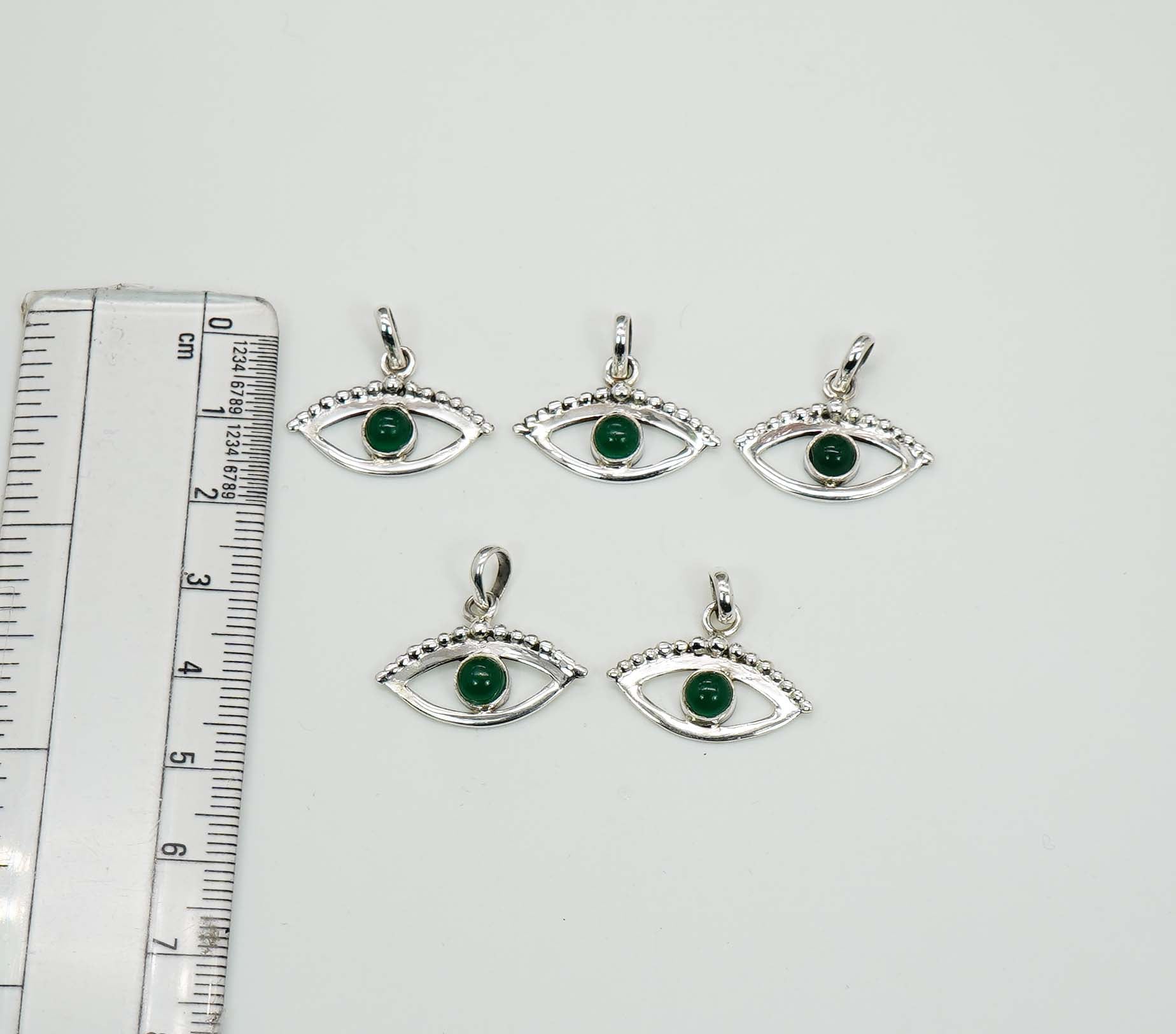 Wholesale 925 5PC Solid Sterling Silver Green Onyx Eye Style Pendant Lot