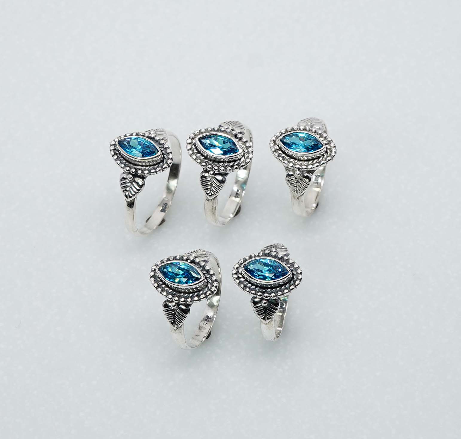 Wholesale 925 5PC Solid Sterling Silver Natural Swiss Blue Topaz Ring Lot