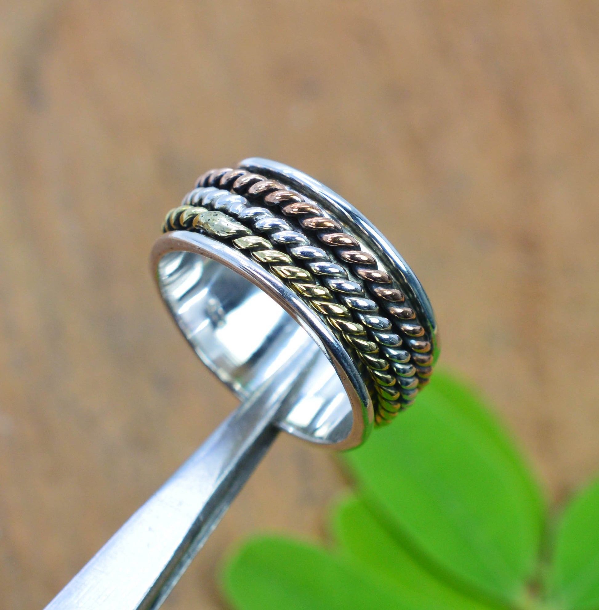 WHOLESALE 925 5PC SOLID STERLING SILVER PLAIN THREE TONE RING LOT