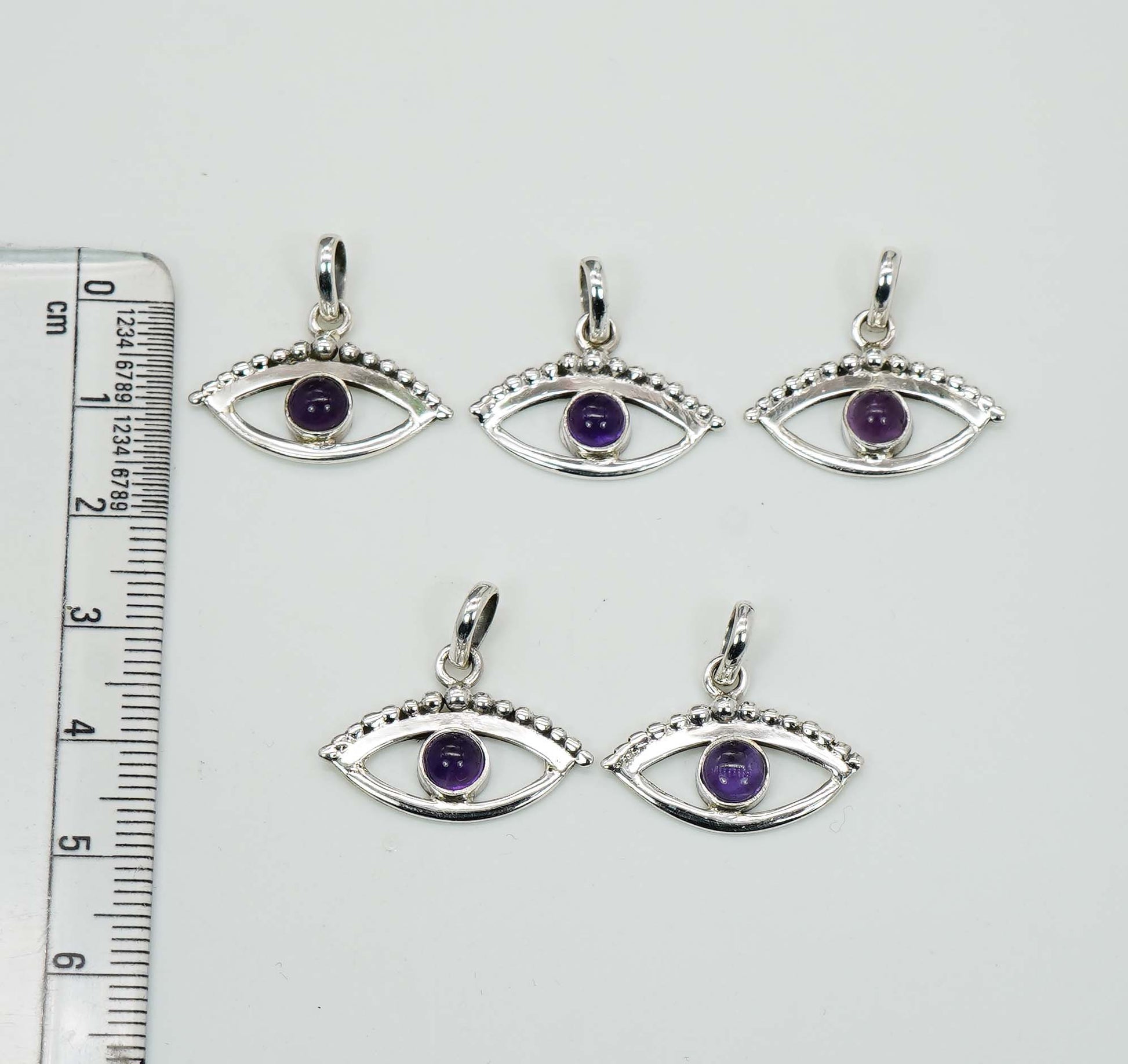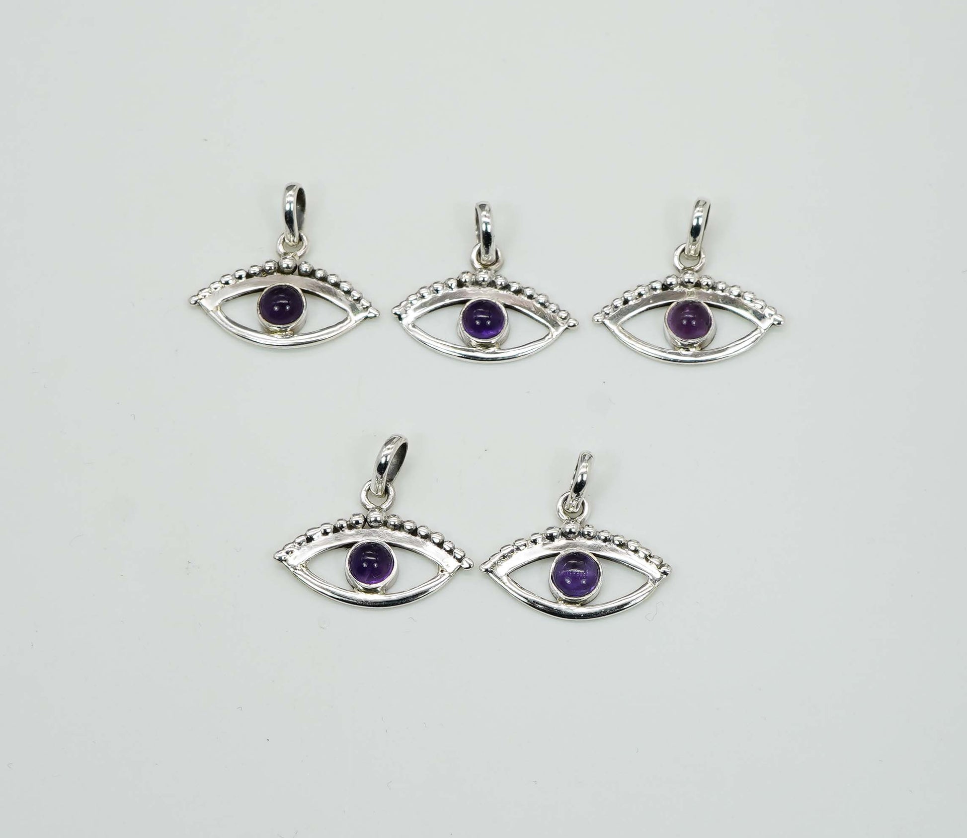 Wholesale 925 5PC Solid Sterling Silver Purple Amethyst Eye Style Pendant Lot