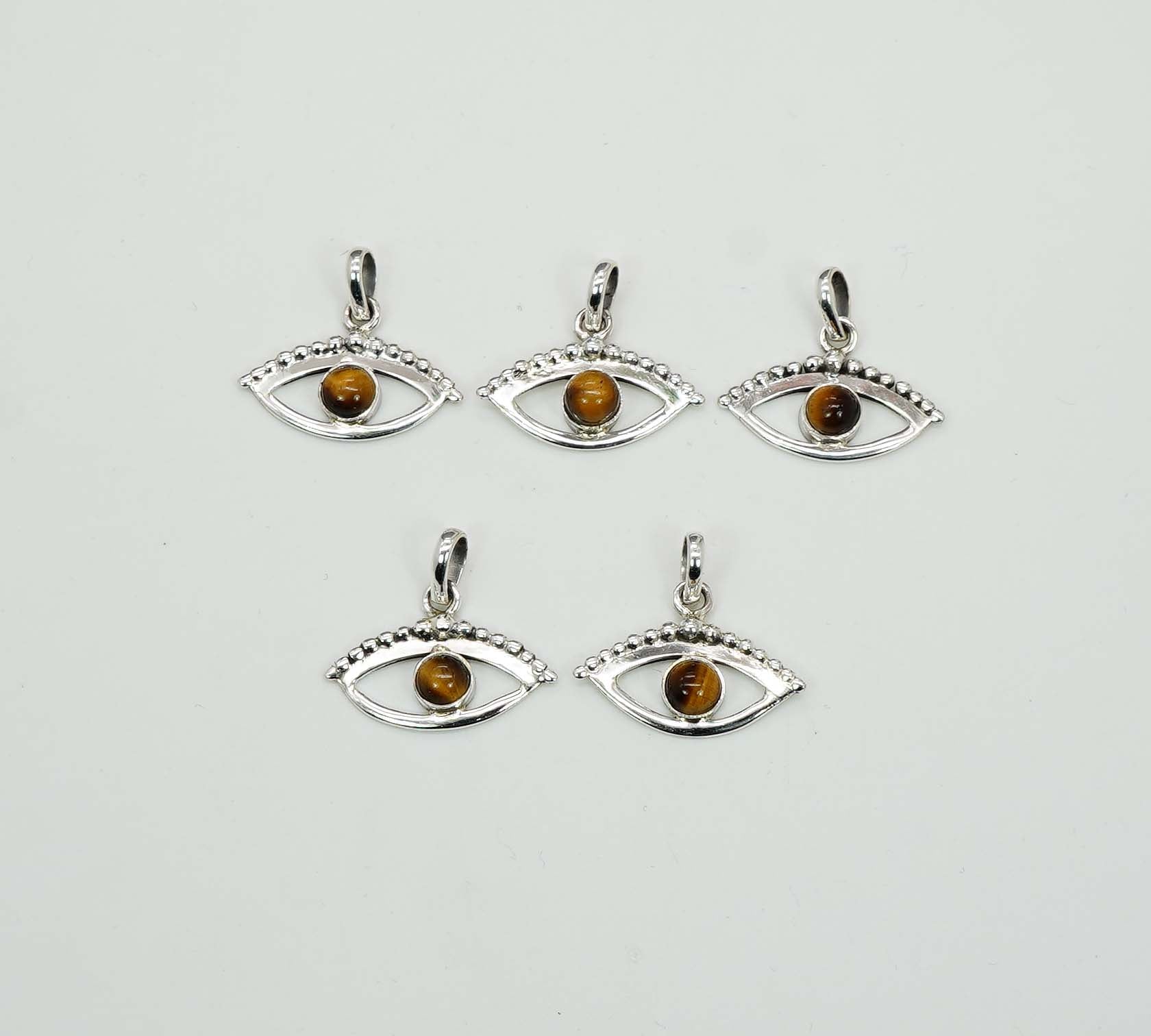 Wholesale 925 5PC Solid Sterling Silver Tiger Eye Eye Style Pendant Lot