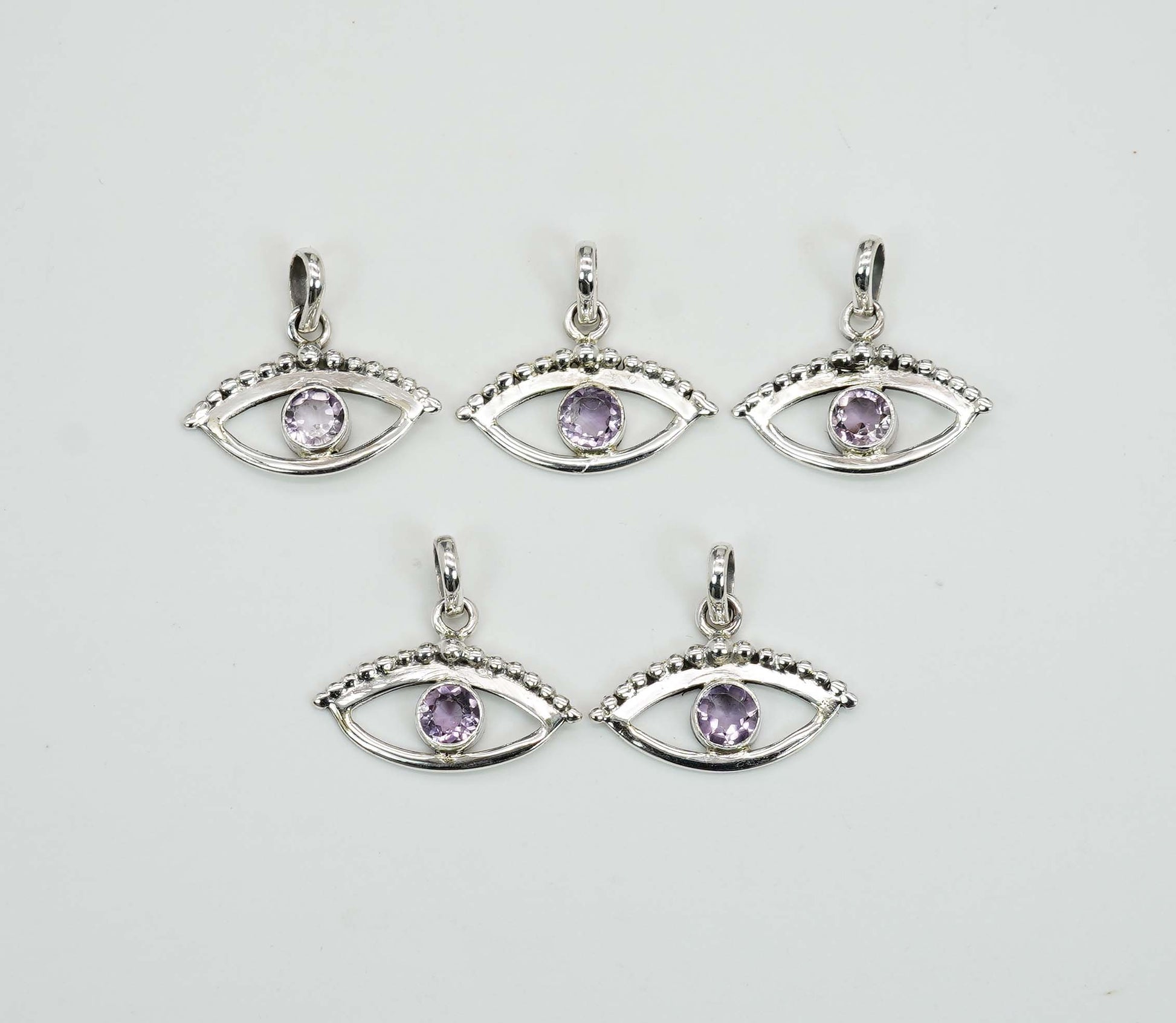 Wholesale 925 5PC Sterling Silver Cut Purple Amethyst Eye Style Pendant Lot