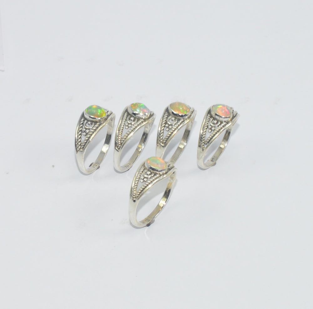 Wholesale5PC925 Solid Sterling Silver NATURAL ETHIOPIAN OPAL RING Lot GTC016